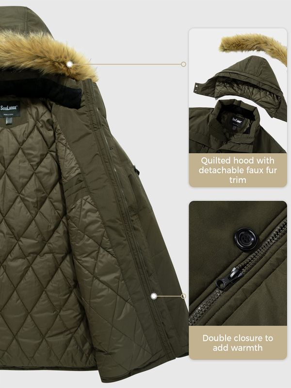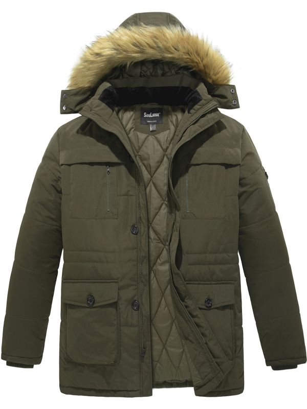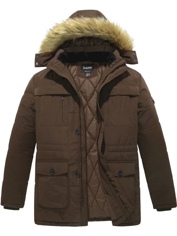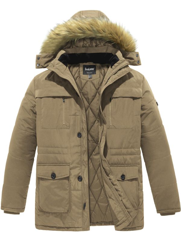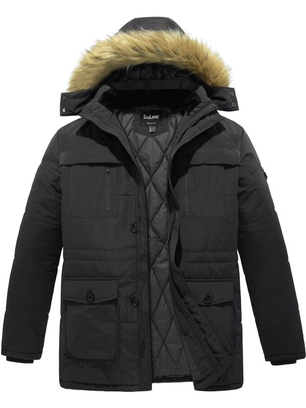 Soularge Men's Big and Tall Winter Warm Jacket Insulated Utility Coat