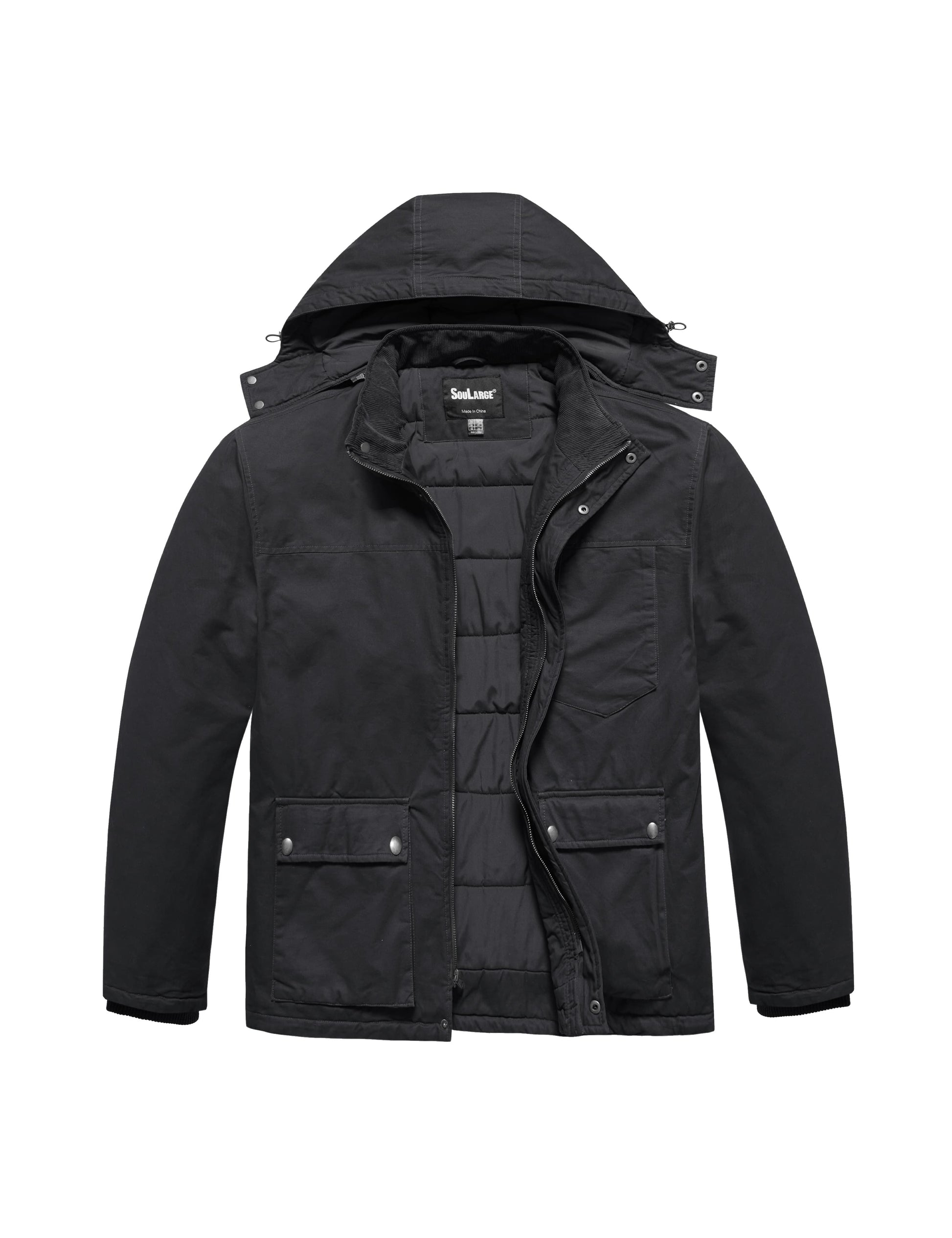 Soularge Men's Big and Tall Winter Warm Thick Multi pockets Puffer Coat